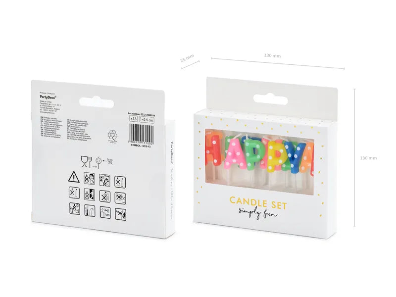 Kerti - Happy Birthday - 2,5 cm - 13 stk- Marglit með hvítum doppum