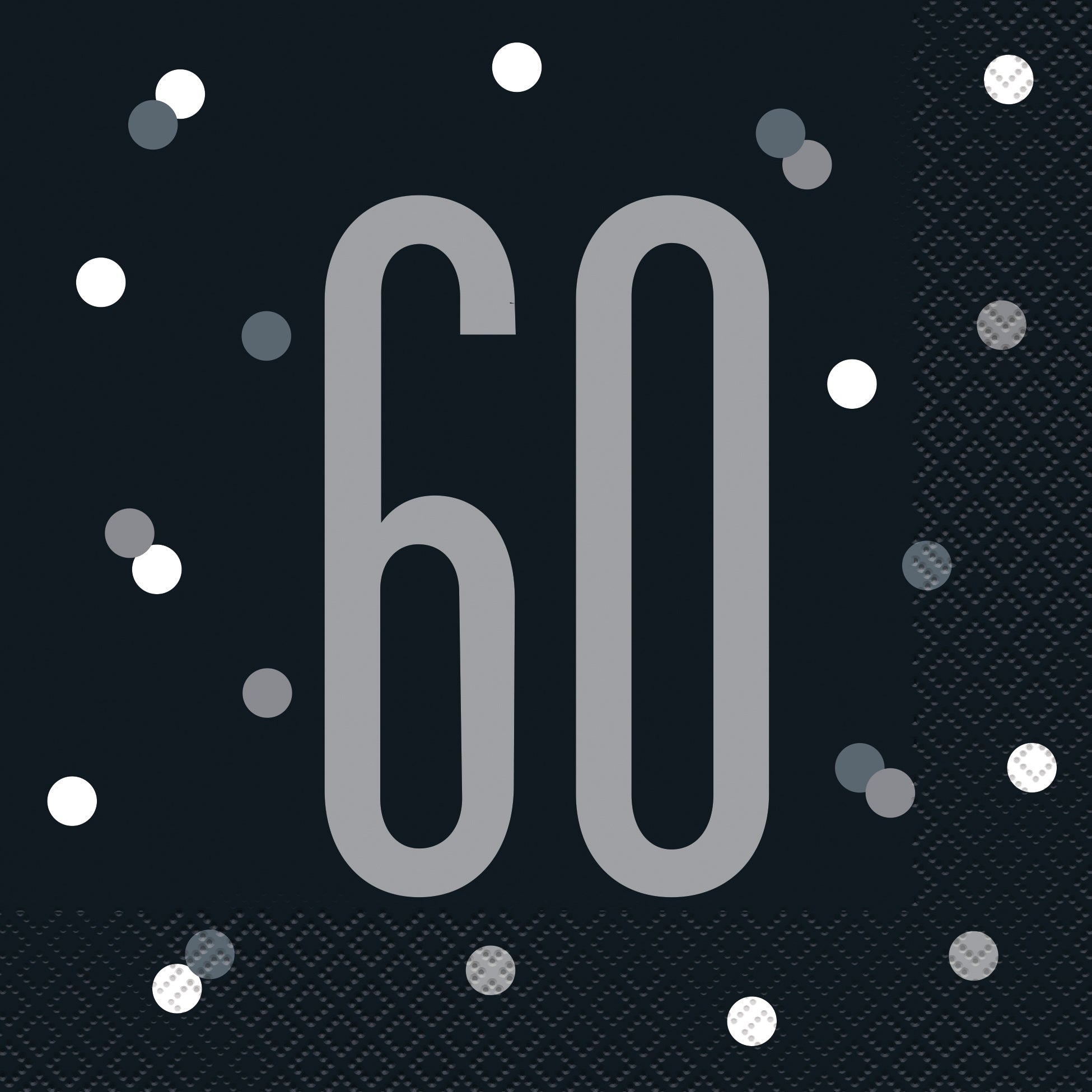 Servíettur - Glitz - 60 ára - 33 x 33 cm - Svartar