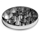 Sett með 12 blómum og laufblöðum. Í settinu eru 4 gerðir skera, hver í þremur stærðum. Mótin eru úr ryðfríu stáli.