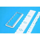 Notið tvöfalda mynsturskerann til þess að búa til sykurmassa- eða marsípanborða. Hann sker bæði uppi og niðri, en ekki á hliðunum svo það er hægt að færa skerann til hliðar til þess að skera lengri borða. Það er einnig hægt að nota aðeins efri eða neðri skerann ef borðinn á að vera mjórri.