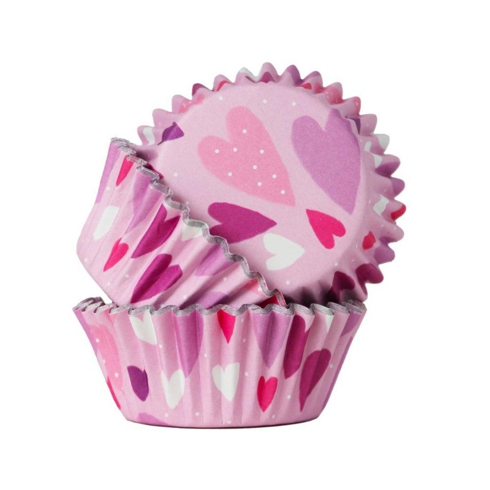Muffinsform með álfilmu - 30 stk - Bleik - Hjörtu