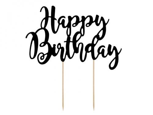 Kökuskilti - Happy Birthday - 20 cm - Svart