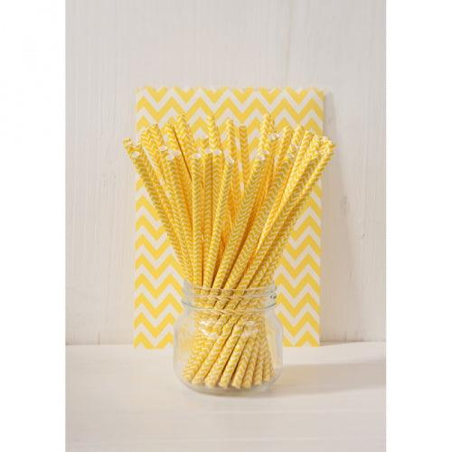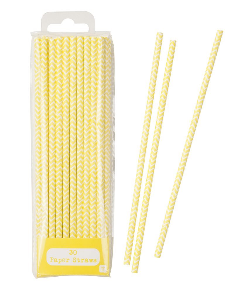 Papparör - Zik-Zak - Gul og hvít - 30 stk