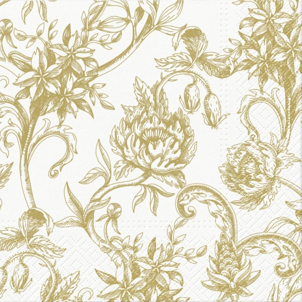 Servíettur - Baroque Flowers Gold - 33 x 33 cm - 20 stk